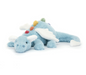 Get ready to be amazed as the Sky Dragon gracefully descends! This enchanting companion boasts a majestic sky-blue body and fluffy rainbow-colored spines that run from head to tail. With an endearing snout, adorable wiggly nostrils, and heavenly-white wings, ears, and tail, this dozing dragon is a whimsical delight.