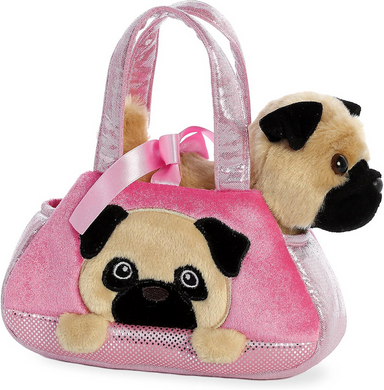 This portable plush dog carrier offers a fun, on-the-go friend for your child. The super-soft pug peeks out from its vibrant carrier, inviting cr...