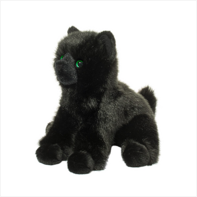 Salem the Black Cat is an elegant, poseable companion with enchanting emerald eyes. This 9-inch plush features a silky black coat and a rounded kit...