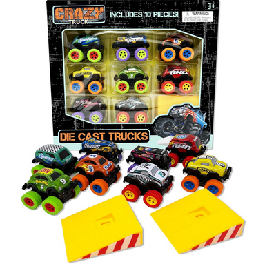 The Crazy Truck 10-Piece Pull Back City Cars and Trucks Set turns any play space into a mini racetrack adventure. These friction-powered metal vehi...