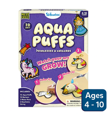 This magical craft kit turns coloring into a puffy masterpiece. Kids color adorable unicorns and princesses, then add water to watch their creation...