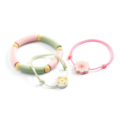 Three adorable bracelets arrive tucked inside a heart shaped box decorated with a sweet rabbit. Two link bracelets feature printed flat beads, and ...