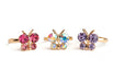 Bring on the sparkle and shine with our beautiful Boutique Butterfly Gem Rings. Each ring in this 3-piece set features a shimmery jewel-toned butterfly design on a gold-colored band sized perfectly for little fingers.