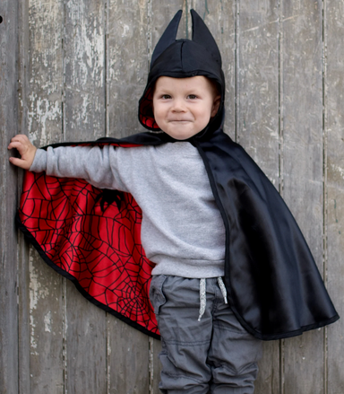 This reversible baby cape is perfect for little heroes aged 12-24 months. One side is black satin with a yellow bat emblem and bat ear hood, while ...