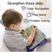 - This STEM toy helps to develop fine motor dexterity, visual spatial skills, counting and color-learning with one fun activity.
