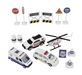 This 15pc Die-cast Police Play has multiple cars, 1 helicopter, and multiple signs.