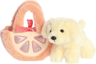 This portable plush dog carrier offers a fun, on-the-go friend for your child. The super-soft Retriever peeks out from its soft plush grapefruit ca...