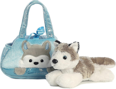 This portable plush dog carrier offers a fun, on-the-go friend for your child. The super-soft husky peeks out from its vibrant carrier, inviting cr...