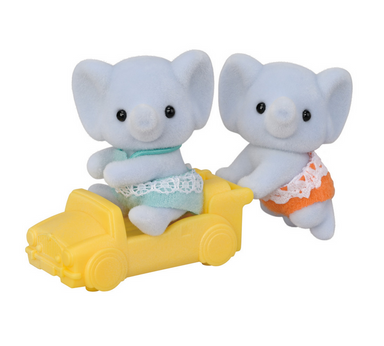 Meet the Elephant twins and their little pushcart. One twin sits while the other crawls, and both can take a turn riding in the cart. Their heads m...