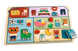This wooden house-themed puzzle includes 22 chunky pieces that are perfectly sized for small hands just learning to grasp. Children match each piece to its matching silhouette on the base, and colors underneath provide helpful clues along the way. The familiar objects make each successful placement feel satisfying and rewarding. This puzzle offers a gentle introduction to matching games while building confidence and fine motor skills through simple play.