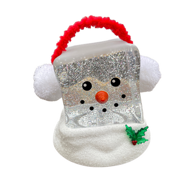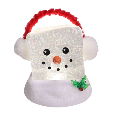 This light-up snowman adds a crisp pop of holiday charm to any space. The glittery ice-cube shape gives it a fun frosted look, and the earmuffs, ca...