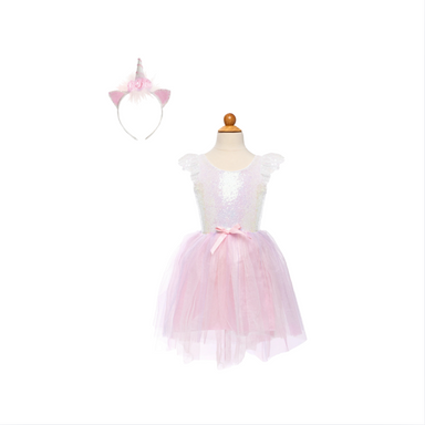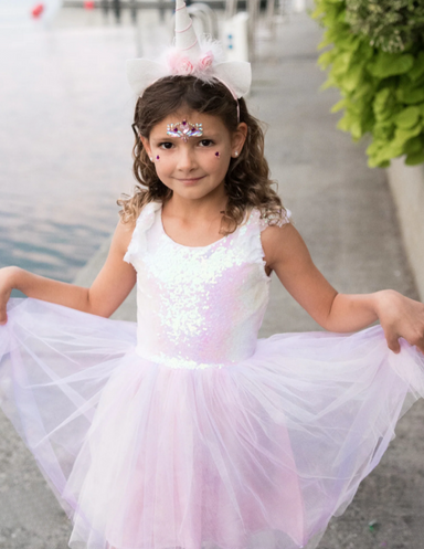 Let your little one shine in the Dreamy Unicorn Dress & Headband! With sparkling iridescent sequins on top and a fluffy pink tutu skirt, this...