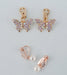 These drop-style clip-on earrings are made for children with unpierced ears. This set comes with a rhinestone-encrusted butterfly style and an elegant pearl style, made with rose gold-colored metals.