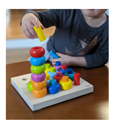 Rainbow Whirls Pegging Game is a HABA classic and Montessori learning favorite! This solid wooden board holds 16 brightly colored wooden pegs and 1...