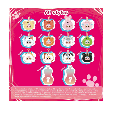 This collection includes 14 unique figures: 12 standard models, 1 secret model, and 1 surprise model. The chance of receiving a standard model is a...