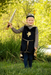 - Black velour tunic with glitter lion emblem