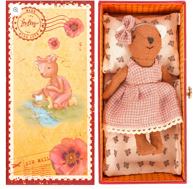 Meet a keepsake bear made for storytelling and snuggles. The Levlovs Bear arrives dressed in a rose linen dress with lace trim and a sweet bow at h...