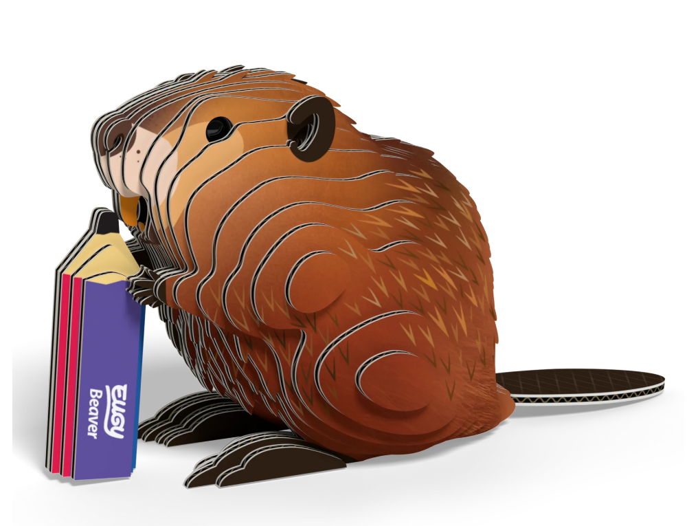 3D Beaver puzzle shows off its buck teeth, textured fur, and flat tail—plus it’s chomping on a pencil for extra charm. Comes with fun beaver facts and makes a quick, crafty build.